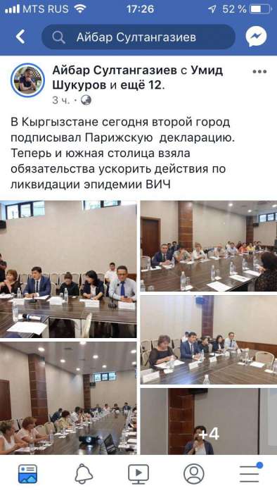 «В Кыргызстане сегодня второй город подписывал Парижскую декларацию. Теперь и южная столица взяла обязательства ускорить действия по ликвидации эпидемии ВИЧ», - написал активист.