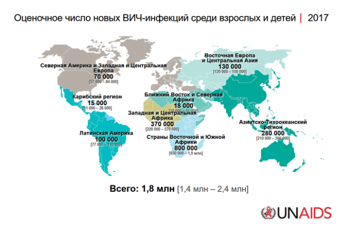 На фоне делающих успехи в направлении борьбы с ВИЧ Восточной и Южной Африки, где за 7 лет число новых ВИЧ+ сократилось почти на треть, эпидемия продолжает набирать обороты в восточноевропейском и центральноазиатском регионе (ВЕЦА). Здесь количество новых случаев ВИЧ за последний год удвоилось. Ближний Восток и Северная Африка также показывают сдержанный рост.