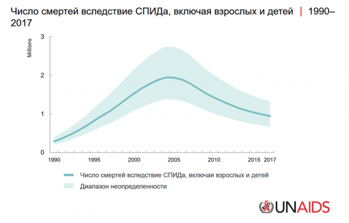 Исходя из данных опубликованного на сайте организации документа, следует, что на настоящий момент в мире заметно снизилось количество смертей, причиной которых был ВИЧ. Это стало возможным благодаря расширению свободного доступа к АРВТ.
