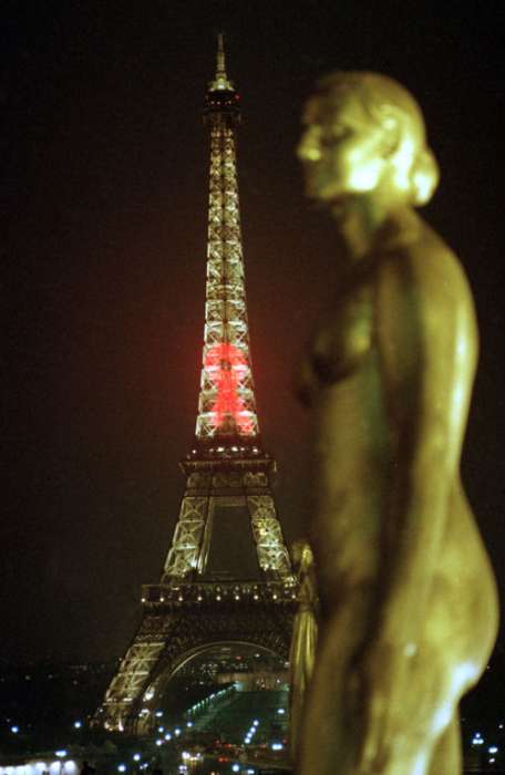В 1994 году красная лента украшала Эйфелеву башню в День борьбы со СПИДом, который отмечается 1 декабря.