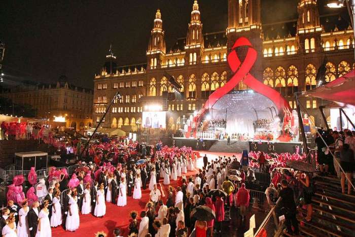 А еще в Вене с 1993 года, ежегодно, 29 мая, проходит Life Ball, или «Бал жизни» — одно из крупнейших благотворительных мероприятий в Европе, которое проводится в поддержку ВИЧ-положительных людей. В мае 2013 года бал устроили на площади перед ратушей, разумеется, здание в этот вечер украшала красная лента.