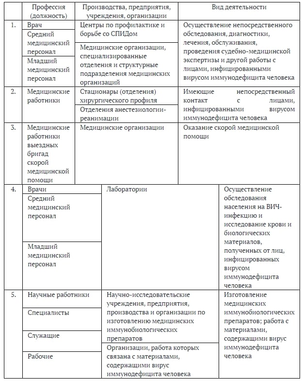 Обязательному медицинскому освидетельствованию для выявления ВИЧ-инфекции при проведении обязательных предварительных при поступлении на работу и периодических медицинских осмотров подлежат следующие работники: