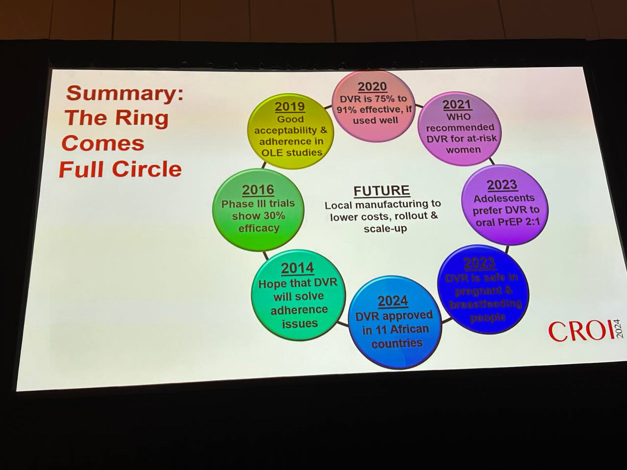 На прошедшей в завершающий день Конференции CROI 2024 панельной сессии, которая была посвящена PrEP, Лейла Э. Мансур из Центра программы исследований СПИДа в ЮАР представила доклад о радикальном изменении профилактики ВИЧ среди женщин в Африке. Центральное место в ее презентации заняла тема недооцененного ранее потенциала вагинального кольца с дапивирином.