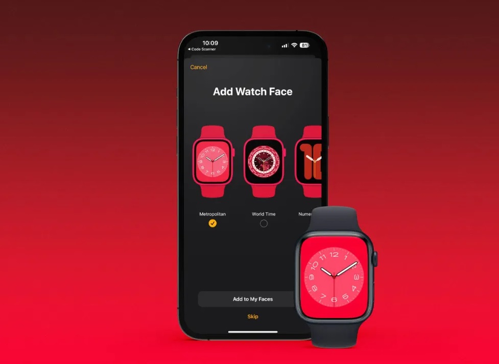 Компания Apple уже много лет сотрудничает с организацией RED, которая занимается повышением осведомлённости и сбором средств для борьбы с распространением ВИЧ. В преддверии Всемирного дня борьбы со СПИДом линейка Apple RED пополнилась новой версией циферблата Apple Watch Metropolitan.