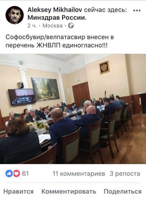 «Софосбувир/велпатасвир внесен в перечень ЖНВЛП единогласно!!!»
