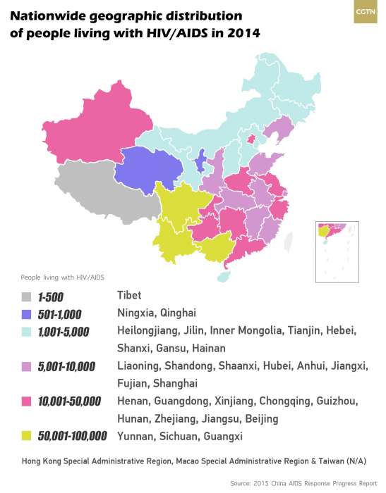 По состоянию на конец 2017 года в Китае проживает 758 тыс. ВИЧ-позитивных людей, причем примерно 30% из них не знают своего статуса.