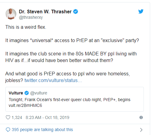 Глава адвокационной организации Нью-Йорка Act Up также отметила странную связь использования идеи PrEP, полностью «покрываемого» препаратами компании Gilead Sciences, и недавним увеличением стоимости месячного курса препарата примерно до 2 тыс. долларов.