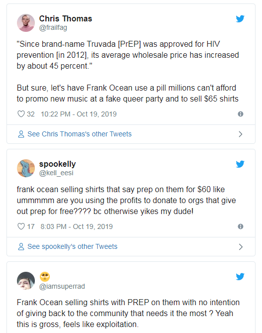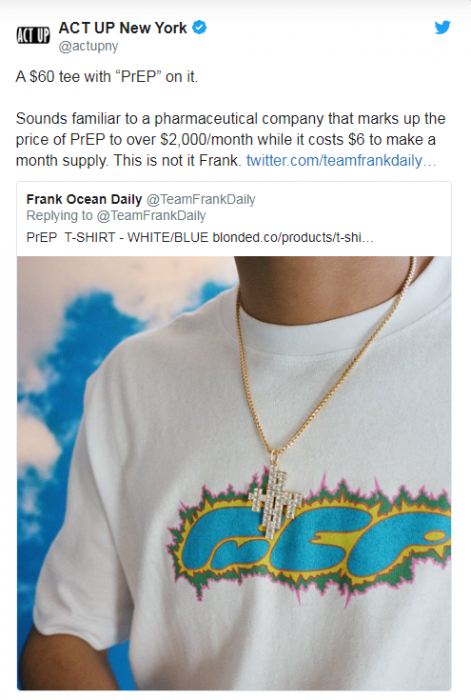 Фрэнк Оушен подвергся критике за продажу футболок с символикой PrEP