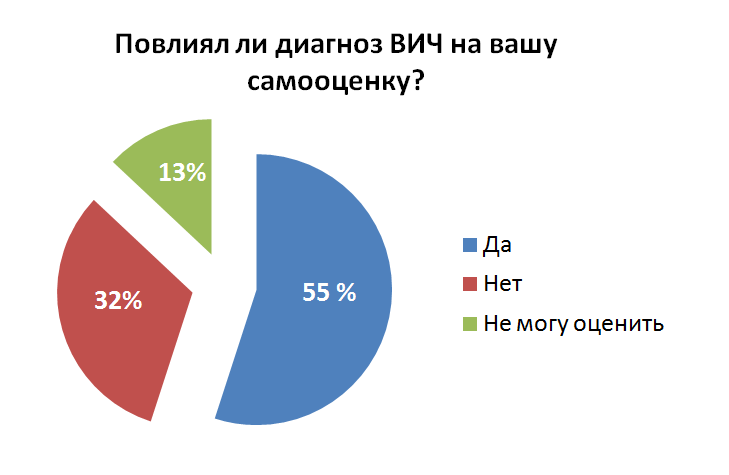 55% пациентов, принявших участие в опросе, считают, что ВИЧ повлиял на их самооценку.