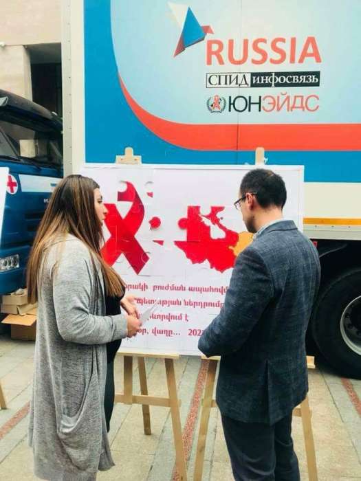 В сотрудничестве с Республиканским Центром СПИД, Международной организацией по Миграции, а также при поддержке и активном участии администрации г. Еревана представители Сети организовали в столице Армении несколько тематических площадок, на которых всем желающим рассказывали о профилактике и лечении ВИЧ-инфекции, гепатитов В и С, предлагали пройти тестирование.